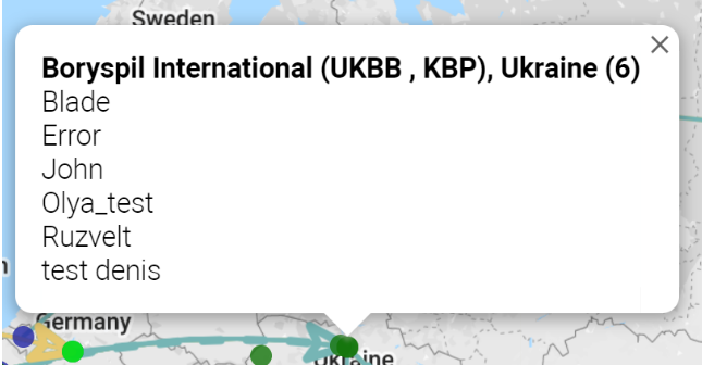 Click the Show aircrafts button to display aircraft locations as light green points.