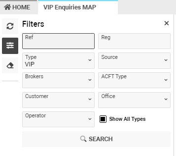 Navigate to the Flights section and under Maps & Empty Legs, click the “VIP Enquiries Map” Button.