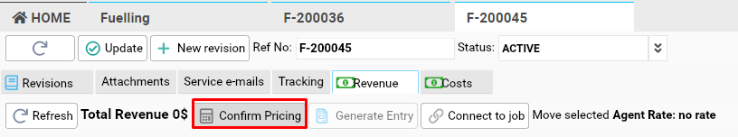 Go to Revenue tab → click Confirm Pricing → select Yes to confirm.