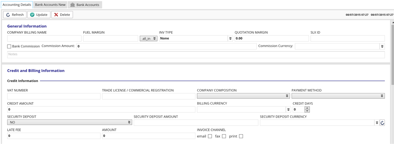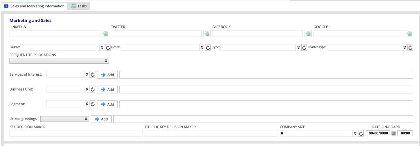 Sales and marketing tab is dedicated for social networks contacts and marketing information (optional)