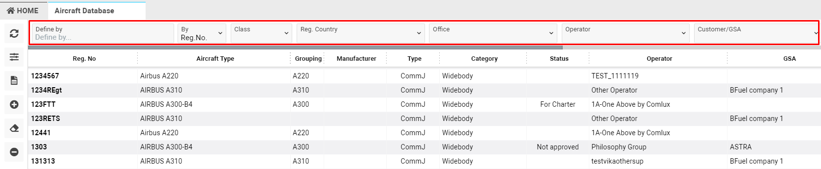 - Linked GSA - displays the list of aircrafts with linked GSA