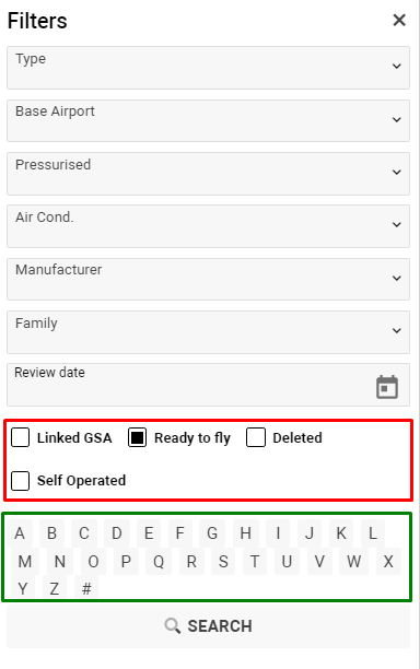 - Ready to fly - shows the list of aircraft which ready for work