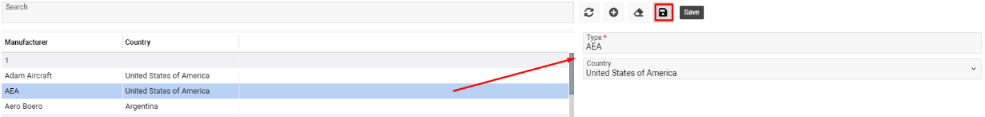 Editing an Existing Aircraft Manufacturer