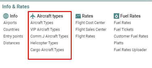 Aircraft types management