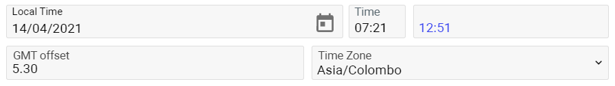 Local time and GMT offset will show after saving Time Zone: