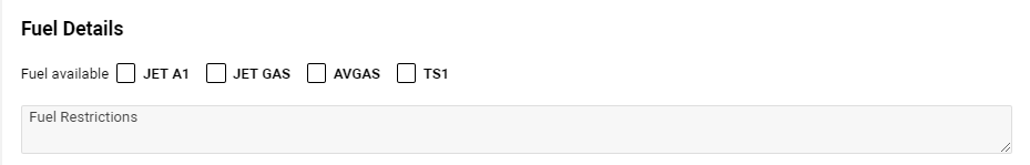 In the Fuel Details block you can select the type of available fuel and fill in fuel restrictions.