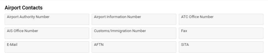 On the page you can fill in the main information about an airport: main information, general details, fuel details and others.