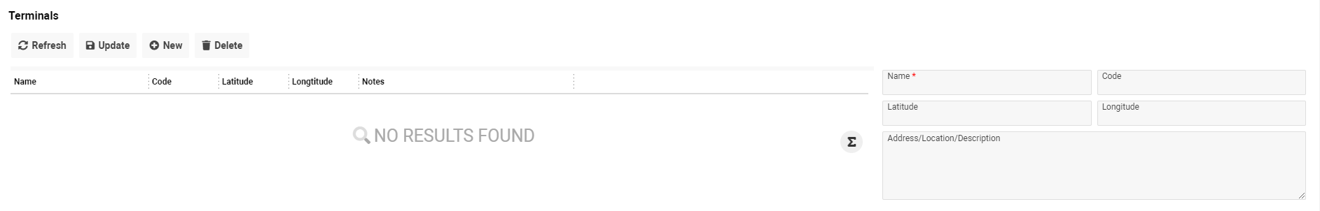 In case you select a terminal and want to create a new record, you can use the ‘New’ button.