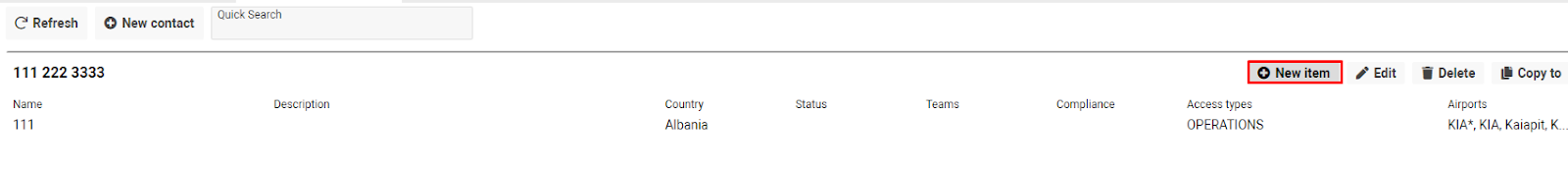 Click the New item button.