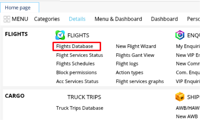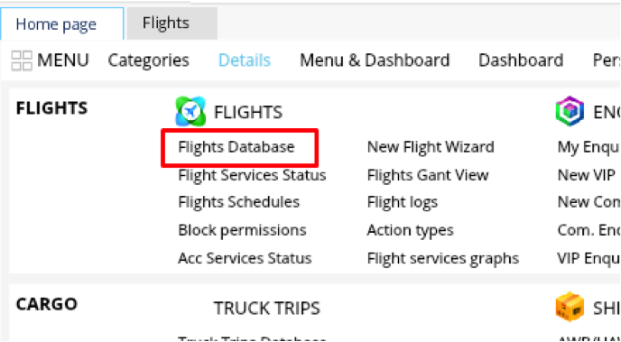 1. Open Flights Database (Home page -> Flights sector -> Flights section -> Flights Database menu item).