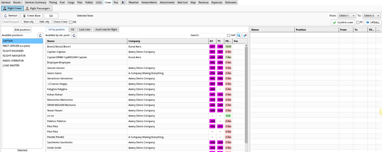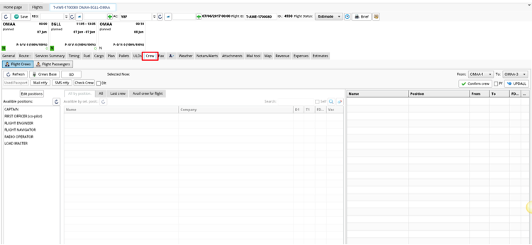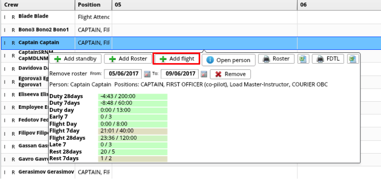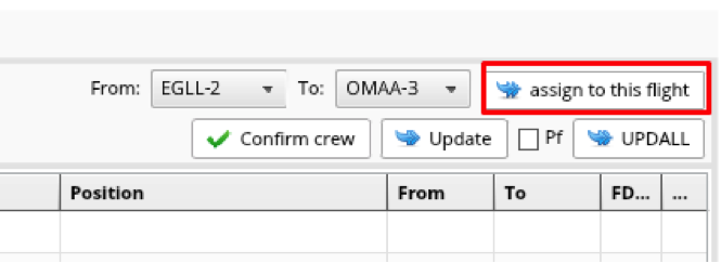4. After pressing 'assign crew' button the 'Assign crew to flight ...' pop-up will open.