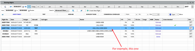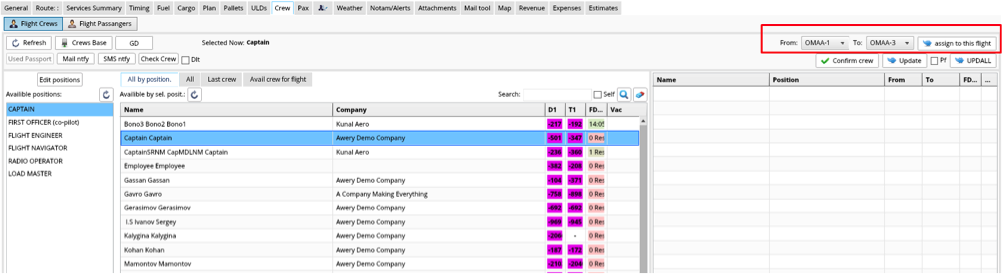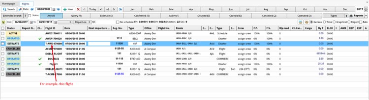 3. Choose in grid the flight you need to assign the captain to and click it once.