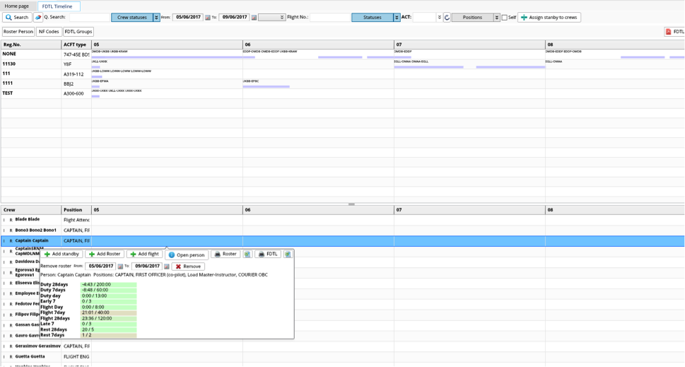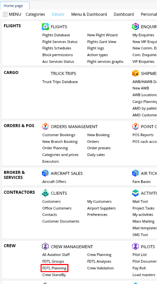 1. Open FDTL Planning page (Home Page -> Crew sector -> Crew management section -> FDTL Planning menu item).