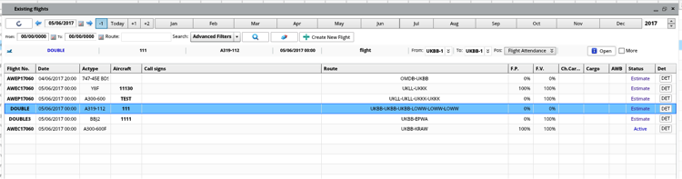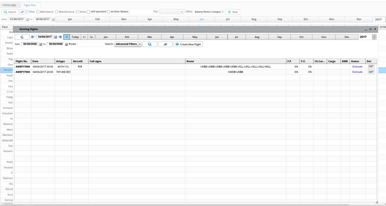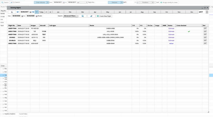 2. At opened page, click twice the cell that matches captain needed and the date you need to assign him to flight - the 'Existing flights' pop-up will opened.