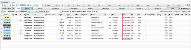 2. At Flights Database page you will see the grid. Find 'Crew' column.