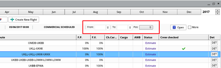 5. Choose the airports needed in 'From' and 'To' options, then choose 'Pos' (position) - button will appear.