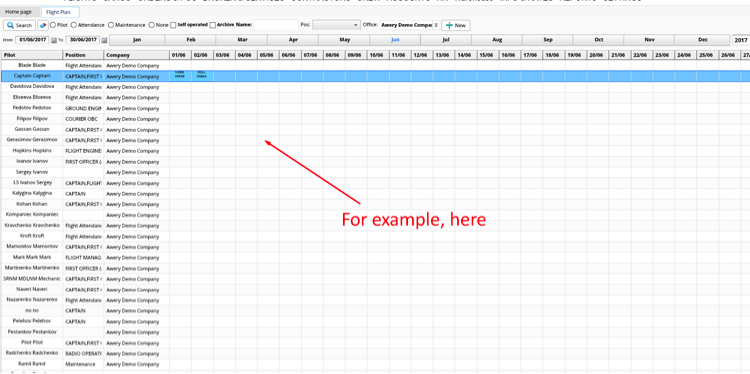 2. Click the cell that matches the chosen captain and the date you need to assign him to flight.