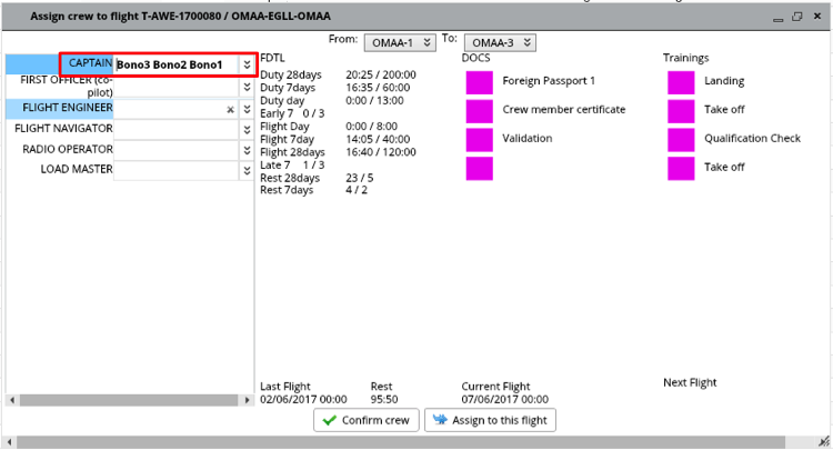 4. Choose in grid the flight you need to assign the captain to and click it once.