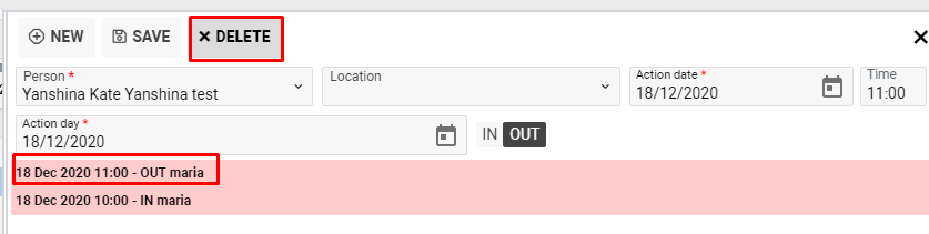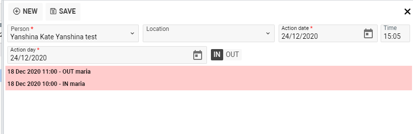 Fill in the necessary fields and select IN or OUT variant to create a new entry.