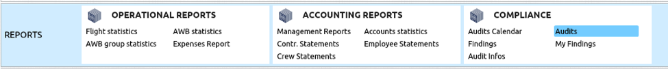To manage internal information for Audits, choose Audit Info in Compliance Module