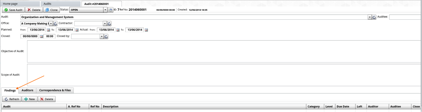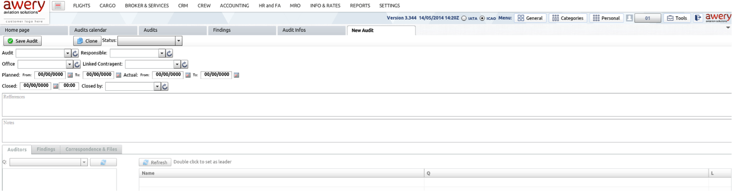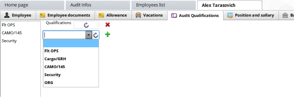 Audit qualification is a knowlegde level required to be an Auditor for each separate Audit. Each Employee, who deals with Audits and can be assigned as Auditor should have it marked on his personal page in System. The procedure is the same. Press , insert data in field, press