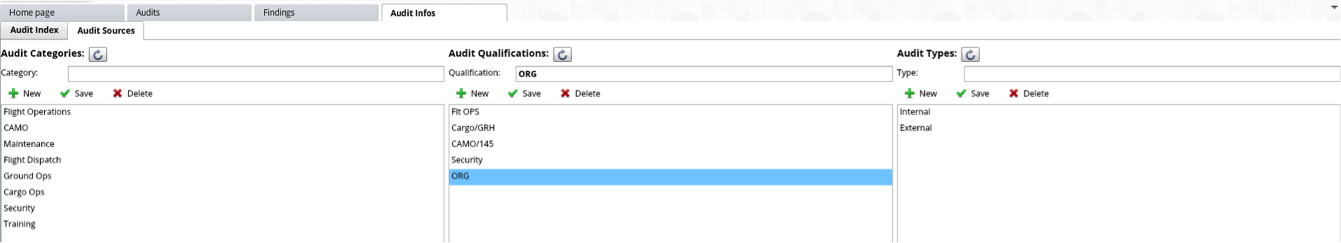 First Audit Categories. Each Audit will have a Category assigned while creation. So first press in first column Audit Categories