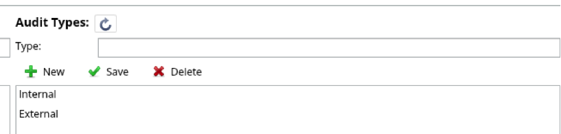 Next better to do Audit Types. The procedure is the same. Press , insert data in field, press