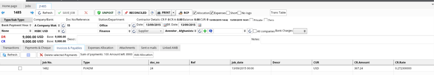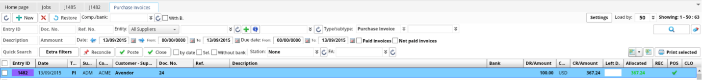 After refreshing, you will see if there are any invoices paid with this Bank Receipt/Payment voucher.