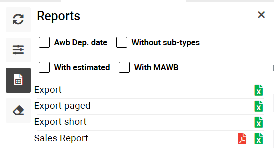 By the ‘Reports’ button you can find all available reports on the Cargo Expenses page.