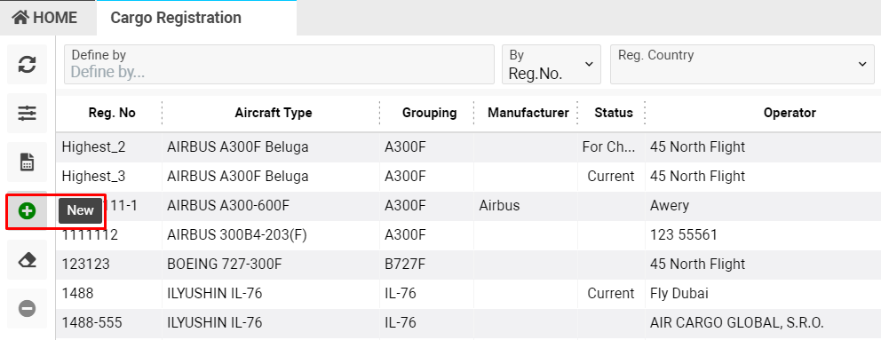 - You have an opportunity to add a new Aircraft to the system by clicking +New button