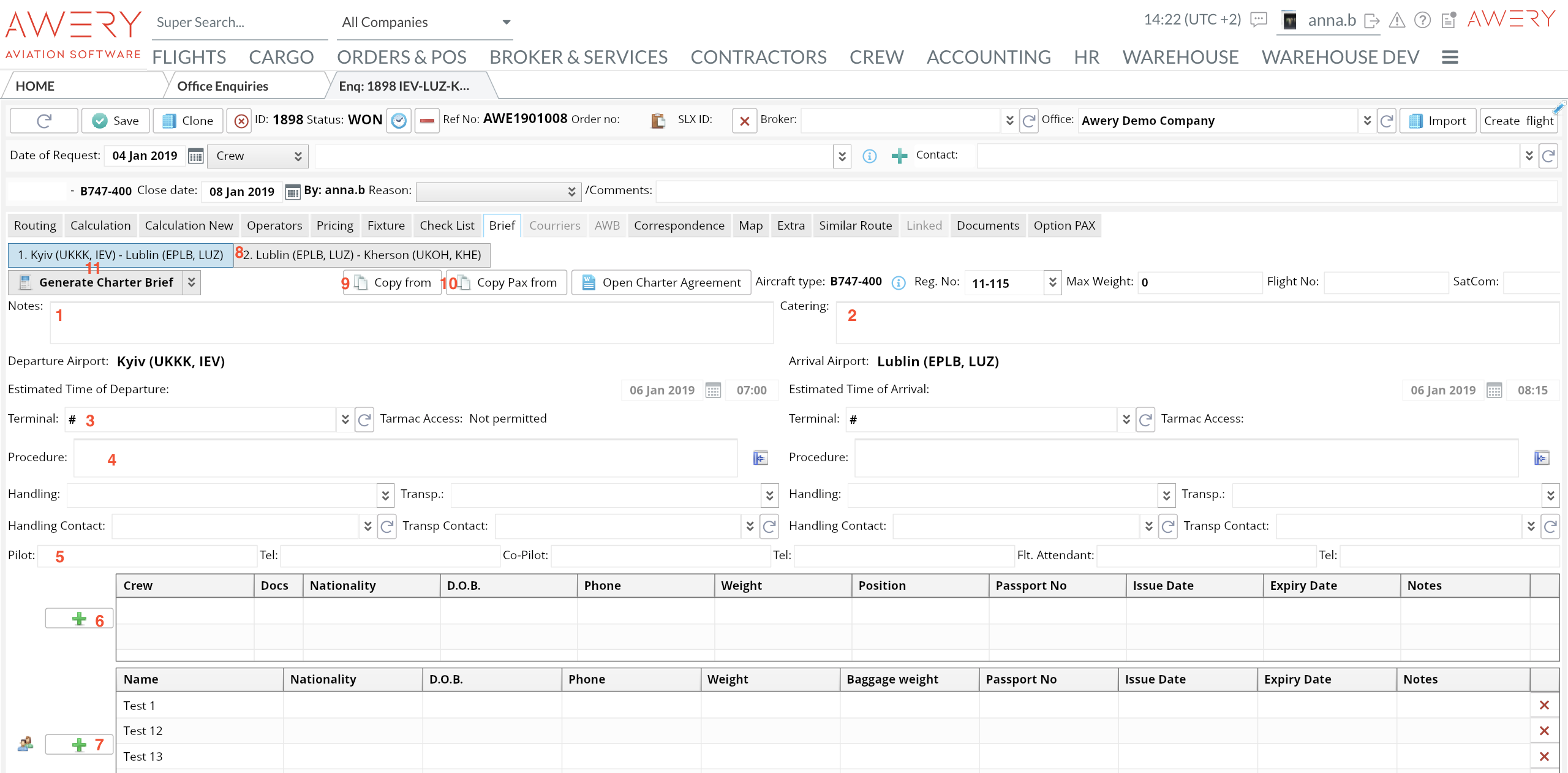 Home→ Flights→ Enquiry→ Office Enquiries→ Open a required Enquiry→ Brief
