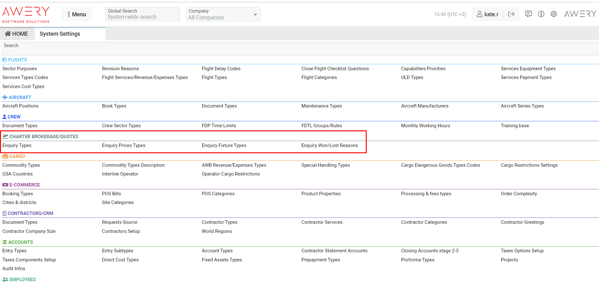 Home Page→ System Settings→ Charter Brokerage/Enquiries Settings