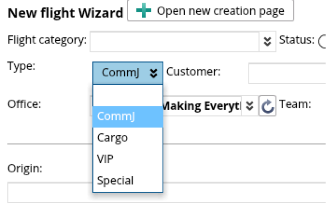 Is used in Flights to choose type of flight (type may vary in different setups up to customers preferences)