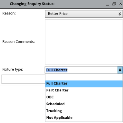 Used for Enquiries, when setting up to WON status