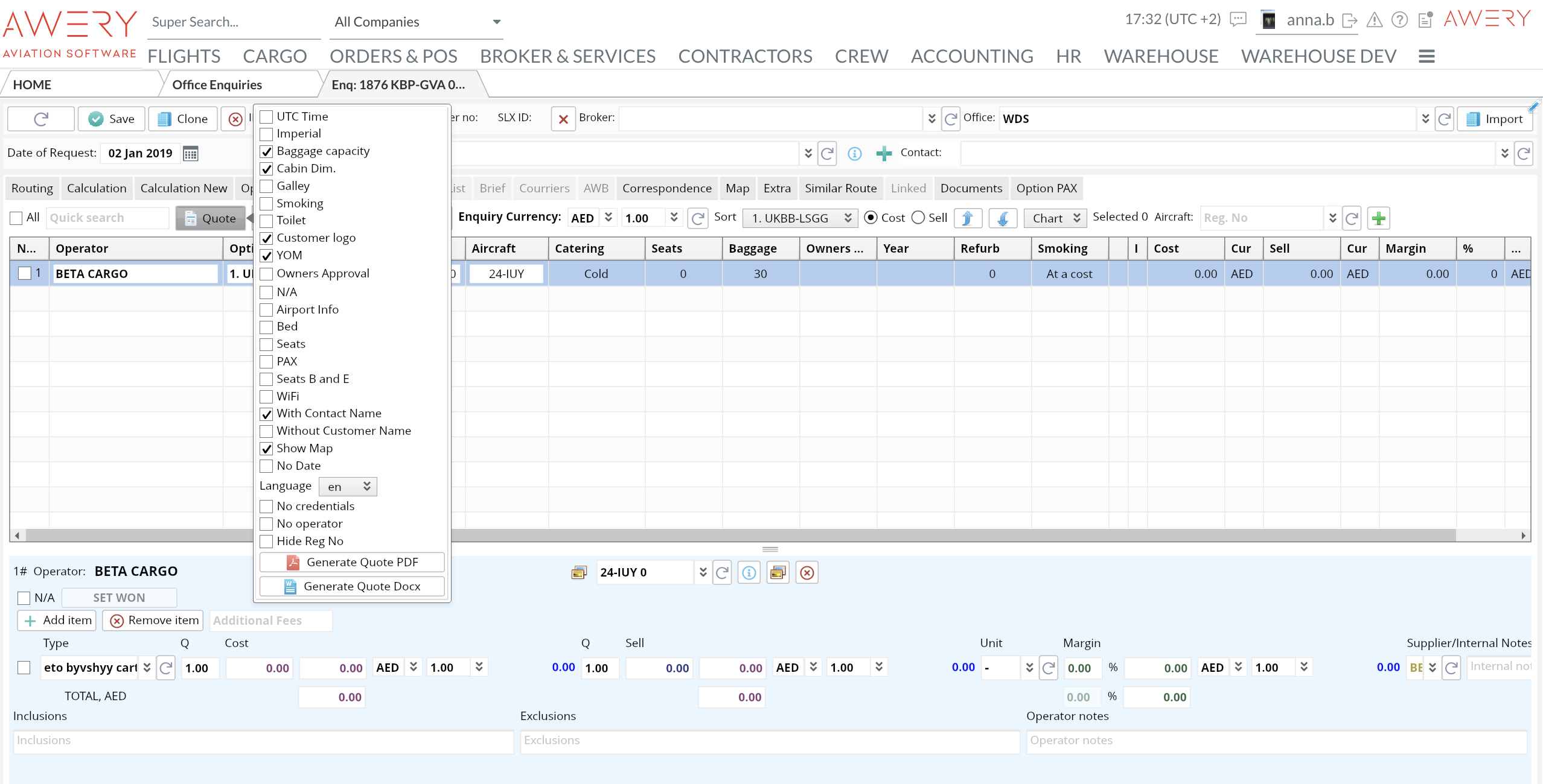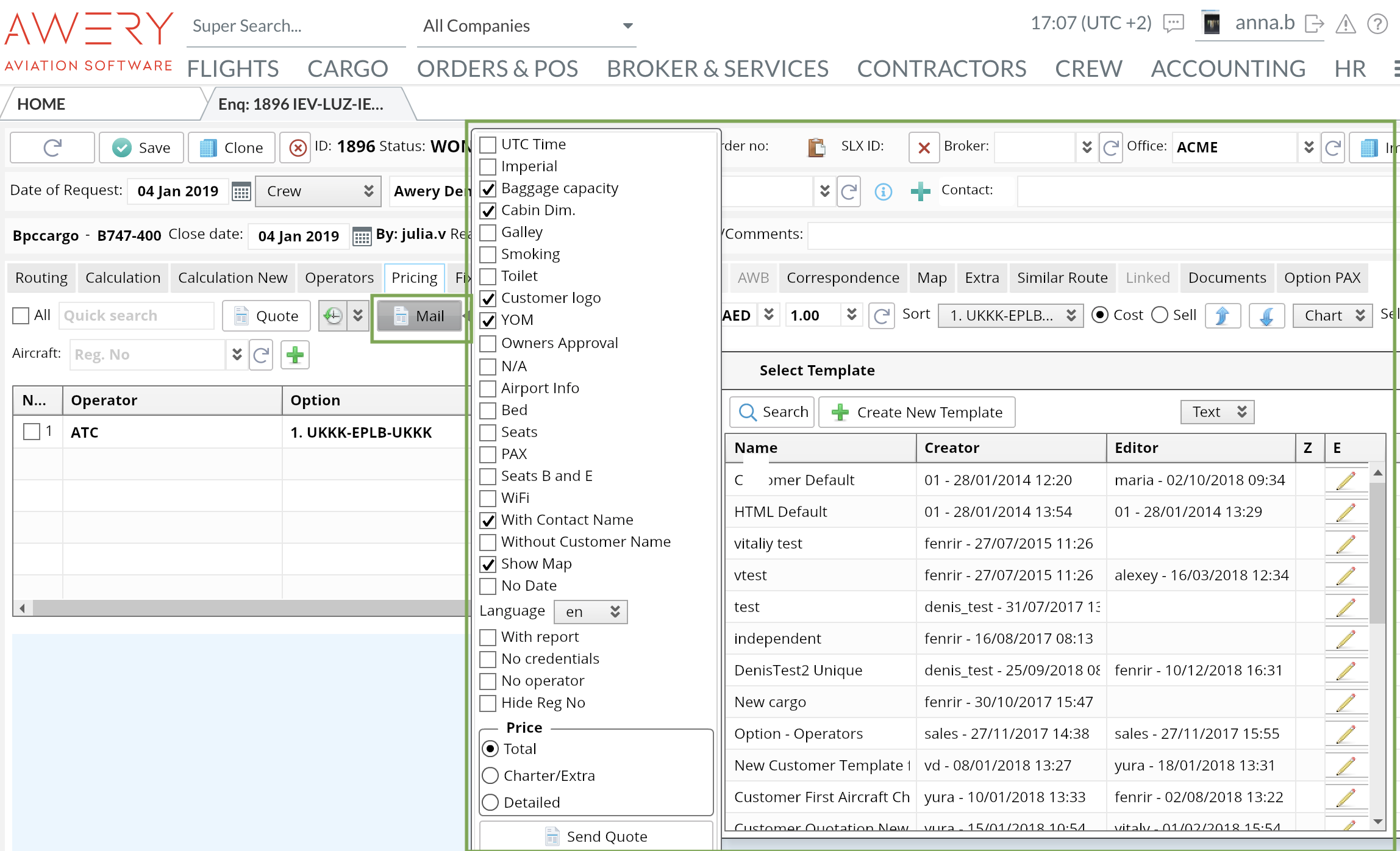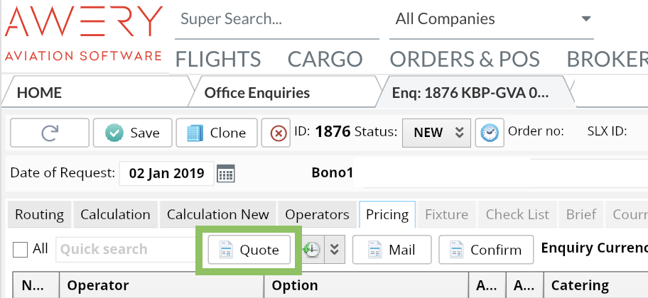 Home→ Flights→ Enquiry→ Office Enquiries→ Open a required Enquiry→ Pricing