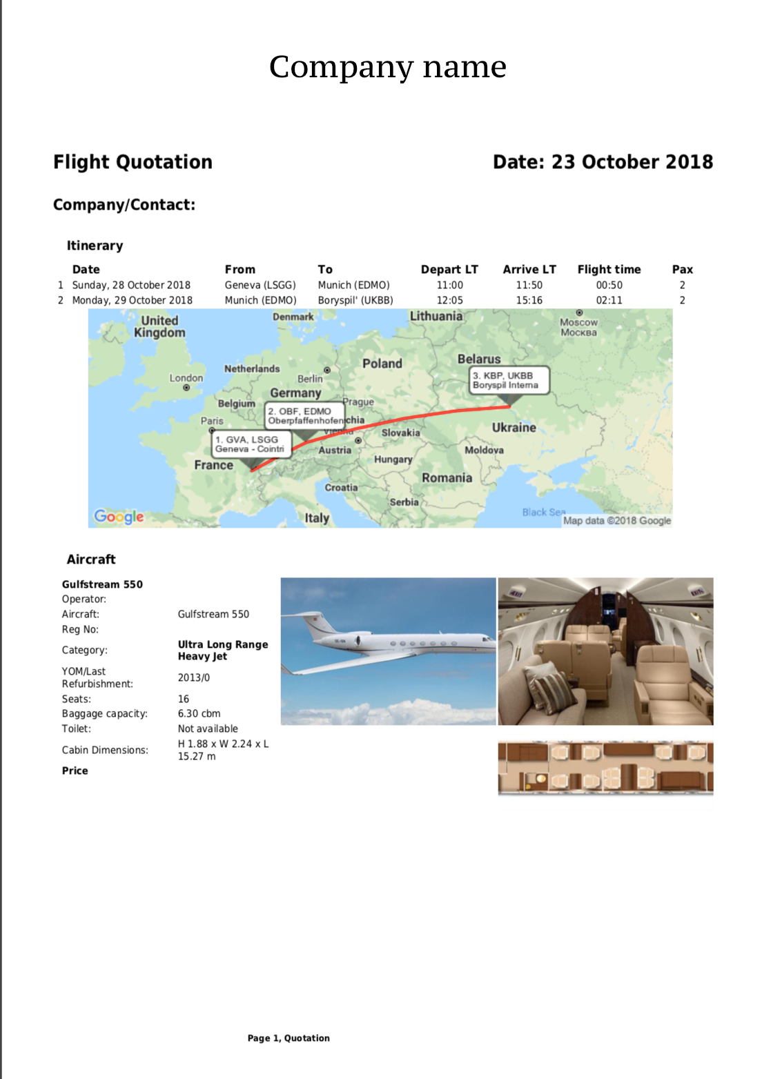 3. Get the Charter Flight Quotation ( Quote template can be changed by your request):