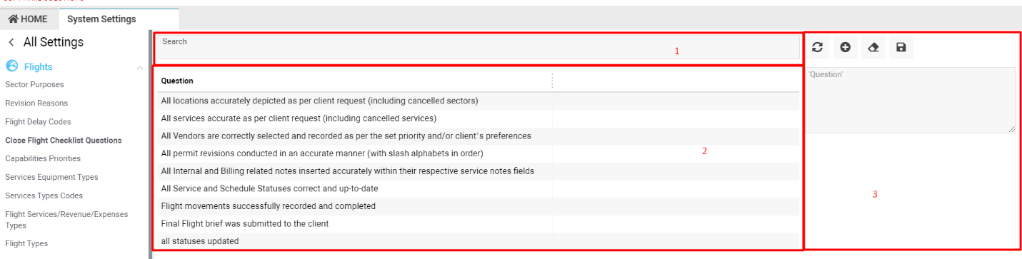 Navigate to the Settings section and under the System Setup Section click the “System Settings” Button. Then under the Flights Section click the “Close Flight Checklist Questions" button.