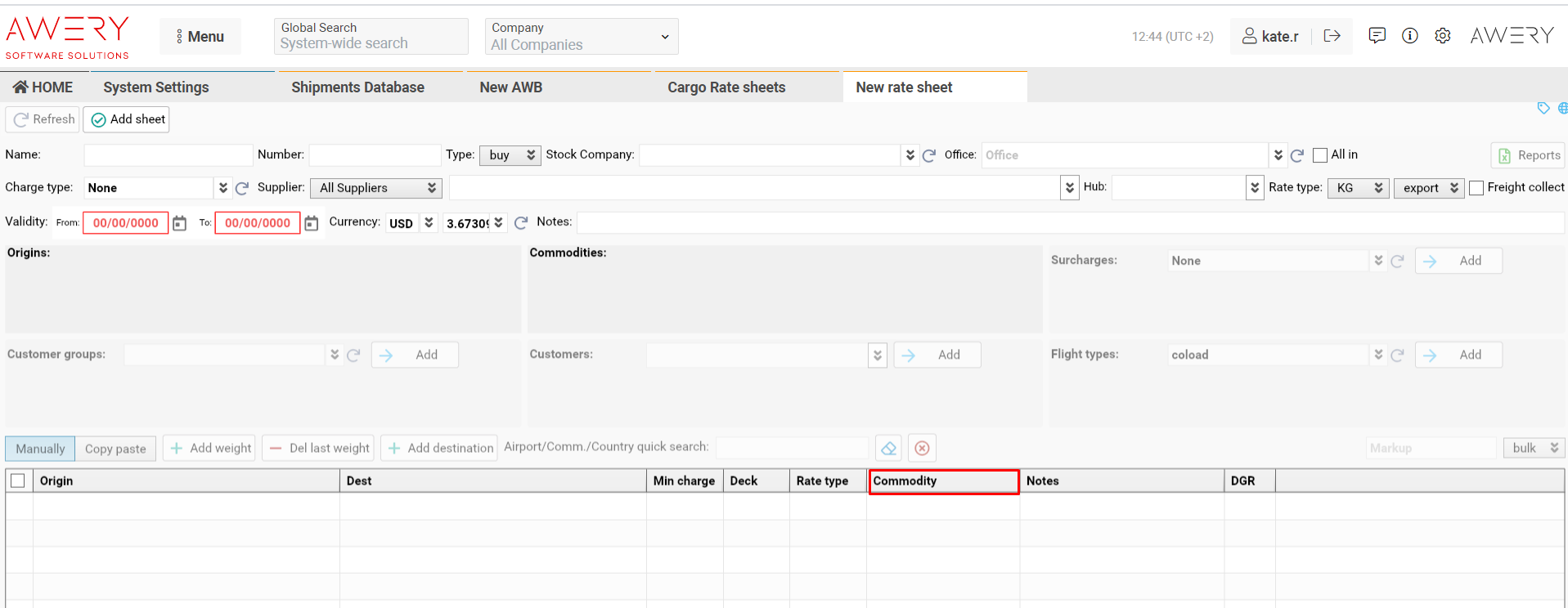 Home Page→ Cargo modulе→ Cargo Rate sheets