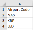 Select ICAO or IATA radio-button - dependently what airport codes (IATA or ICAO) you have in your Excel file;