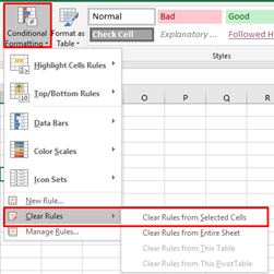 ![]() Figure 4. Text formatting example. | ![]() Figure 5. How to disable Conditional formatting example. | ![]() Figure 6. Example of No Fill cell color selected. | ![]() Figure 7. Example of automatic text color selected. |
