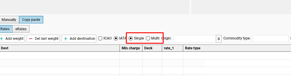 If you have several Origins / several Commodity types to which you would like to apply to rates - switch to Multi chose.
