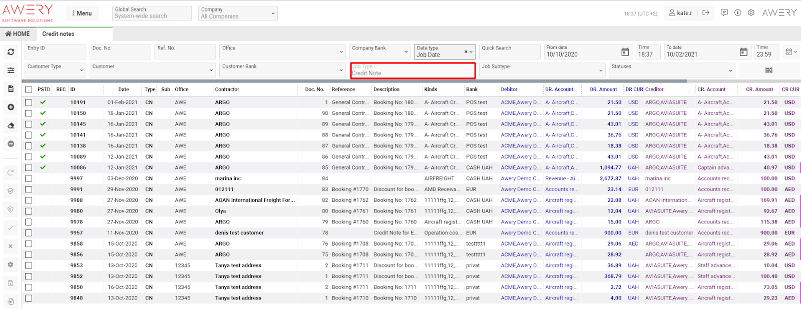 By following these steps, you can easily access and view Credit Notes entries filtered by the specified Job Type.