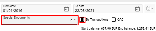 Pay attention that in case of the By Transaction tick, the additional selector Special Documents will be shown in the interface