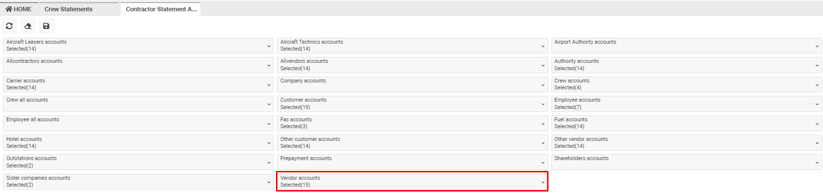 - Select the necessary category and the accounts with the help of a tick and click the Save button