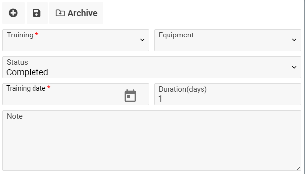 The Training Type and Training date are obligatory, otherwise new training will not be created.