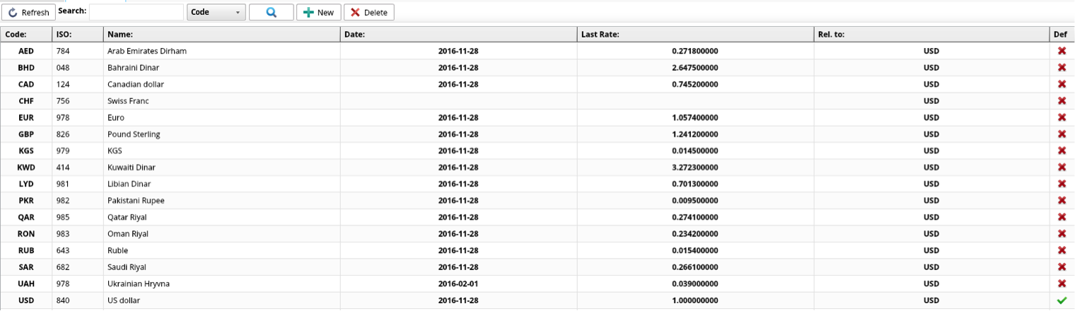 Currency rates interface shows you a list of all currencies that are used to make payment transactions.