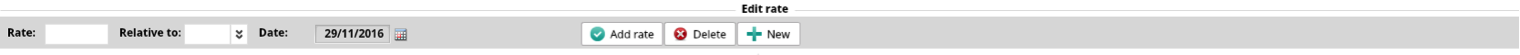 To add or edit rates type a rate value in the Rate field, in the Relative to drop-down menu select a currency that you want a new rate to be calculated in relation to, then in the Date field select a starting date of the new rate, and then click the Add rate button.
