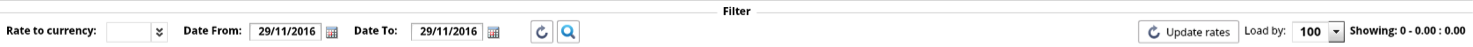 In the Rate to currency, Date from and Date to fields fill in the information that you want to search for.