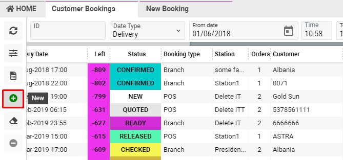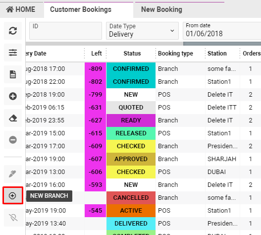 This interface allows you to look through all bookings and to create the new ones, it is possible to make new bookings and new branch bookings.