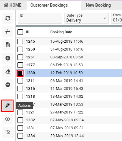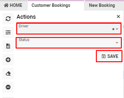 The “Actions” button allows you to change Driver and Status from the “Customer booking” interface